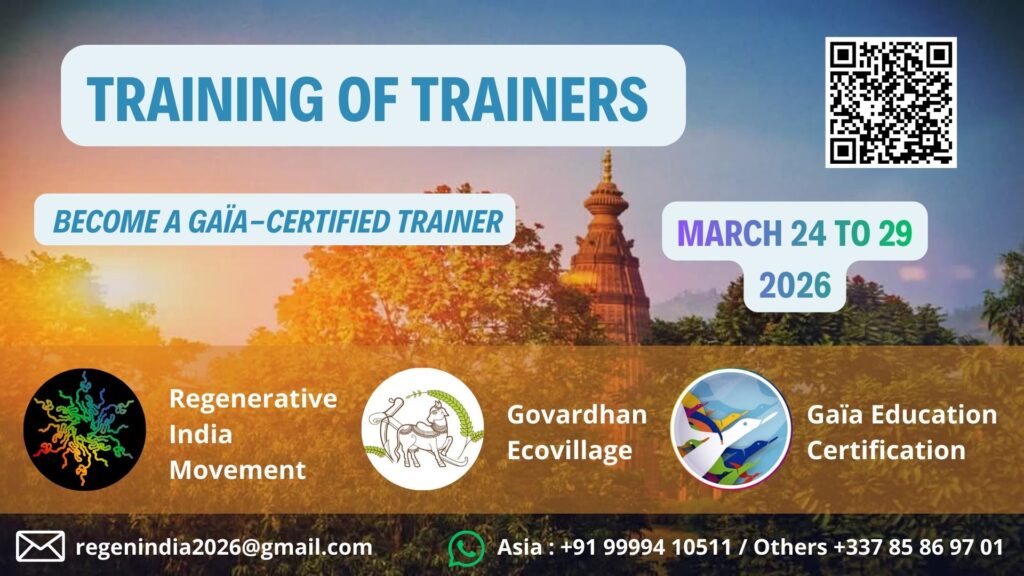 🌿✨ A 6-DAY IMMERSIVE JOURNEY INTO THE ART OF FACILITATION, PARTICIPATORY LEARNING, AND REGENERATIVE LEADERSHIP ✨🌿 🌍💡 Join us in co-creating a transformative learning journey that will ignite a regenerative movement across India and Asia! Together, we will design an educational pathway to empower individuals, communities, and organisations to: Through practical tools, systems thinking, and […]